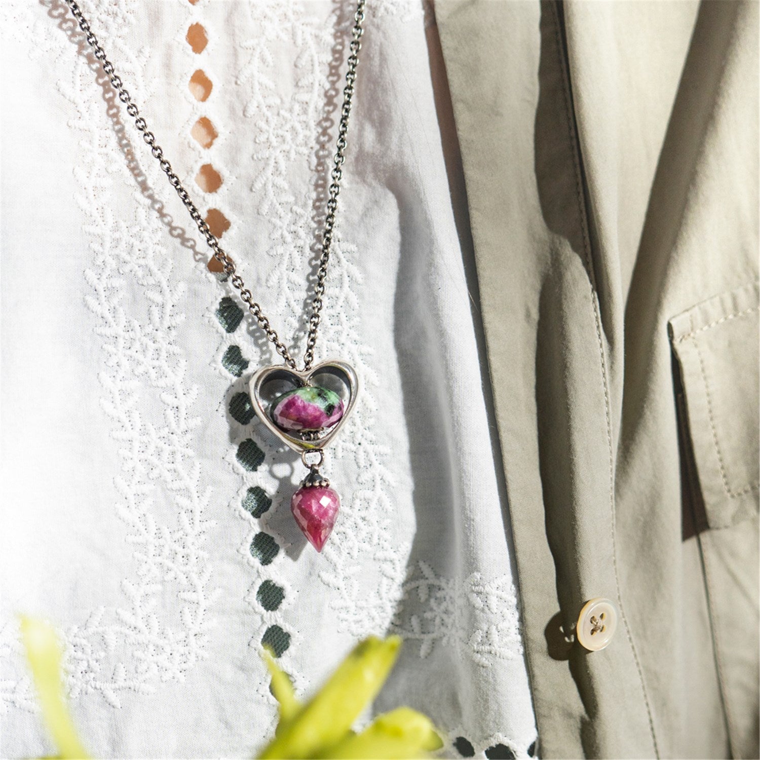 ルビーとゾイサイトの組み合わせは夢を実現する力を与えます。ルビーゾイサイトは負のエネルギーをポジティブな力に変えることができ、早い鼓動を落ち着かせると言われています。