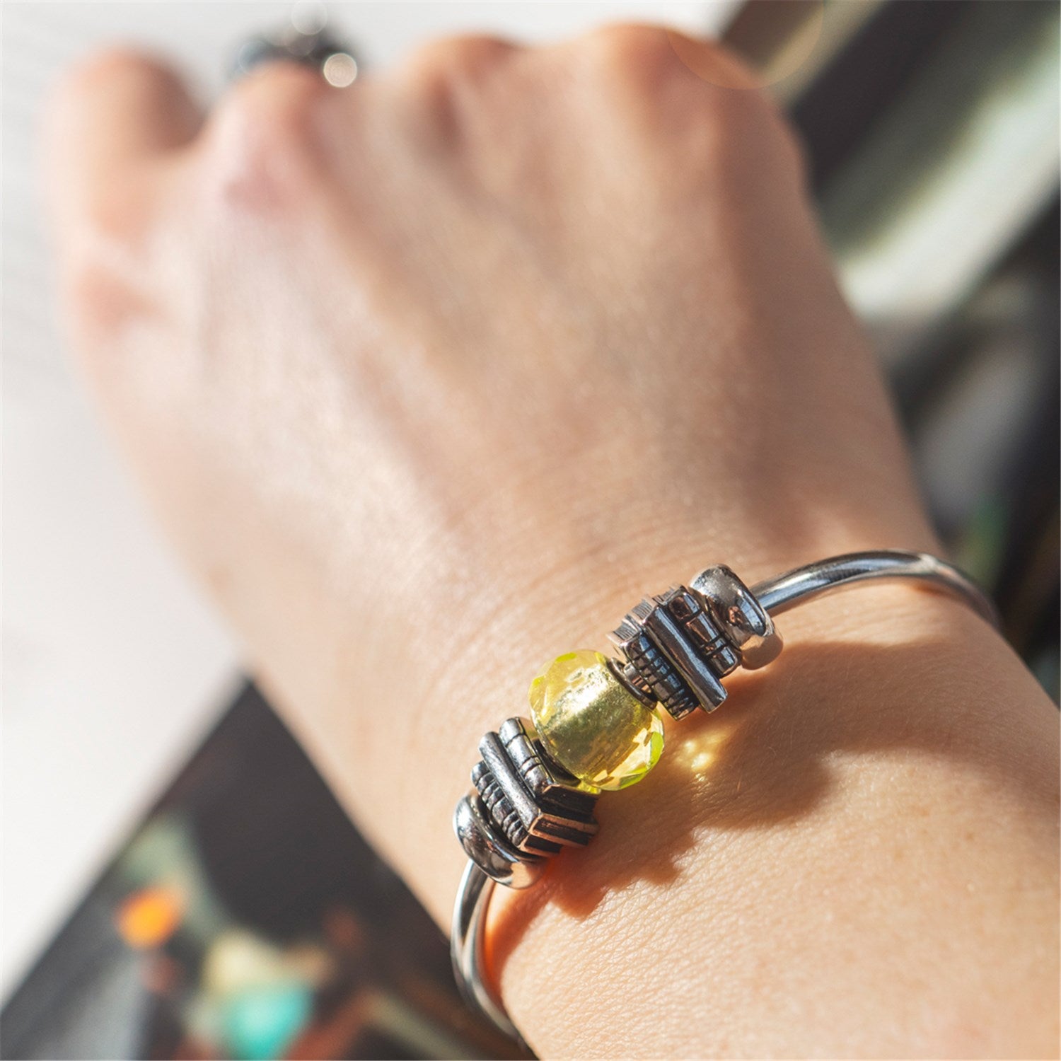 ゴールドのチェーンにシルバービーズを装着すると、光沢を失ったり、退色する場合がございます。ポリッシングクロスで優しく磨くことでこの変色は取れます。